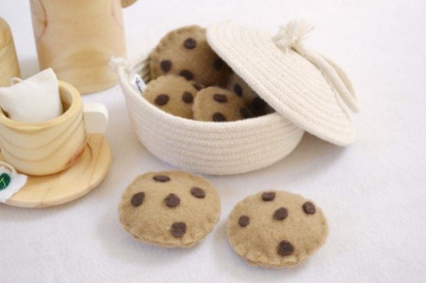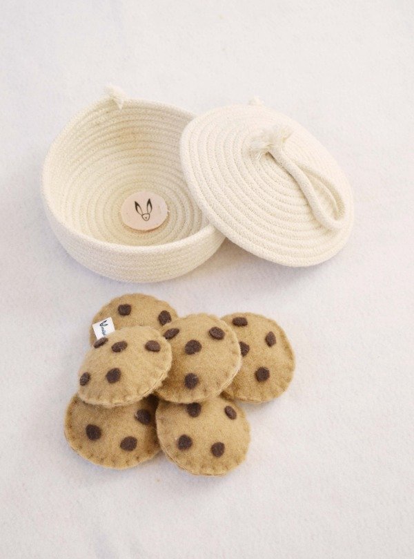 Galletitas confeccionadas en tela , rellenas de vellón siliconado.