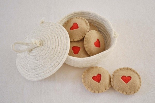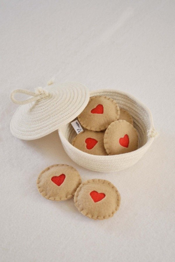 Galletitas confeccionadas en tela , rellenas de vellón siliconado.