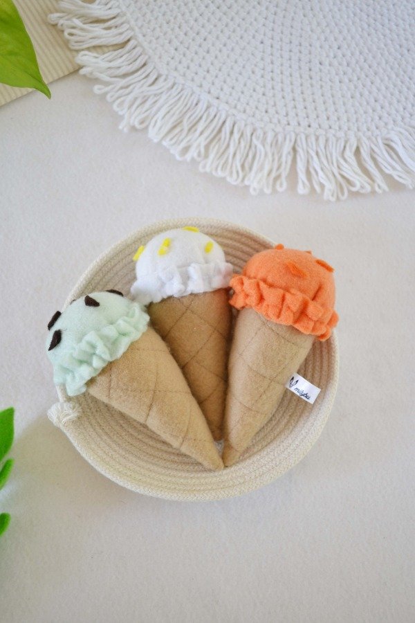 Están confeccionadas en tela, hechas a mano, rellenas de vellón siliconado.